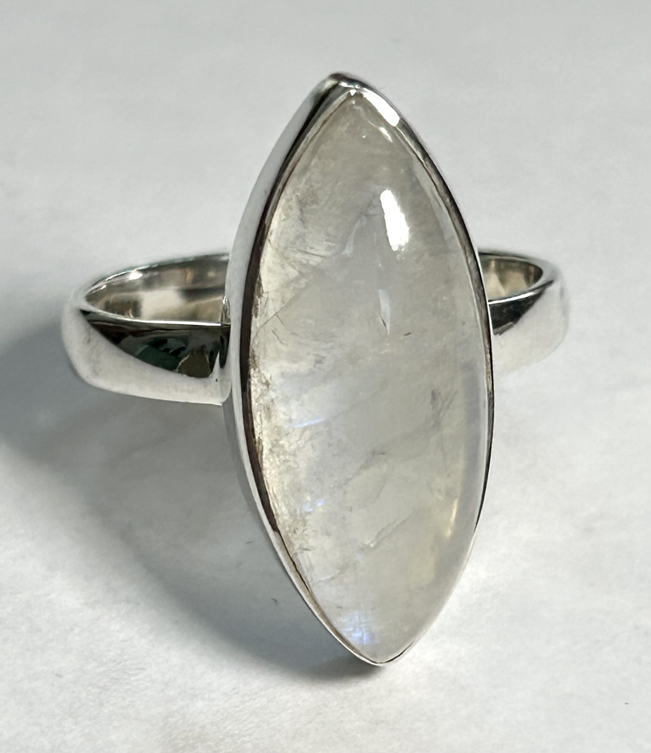 elliptical sterling silver and moonstone ring (25mm x 9mm)