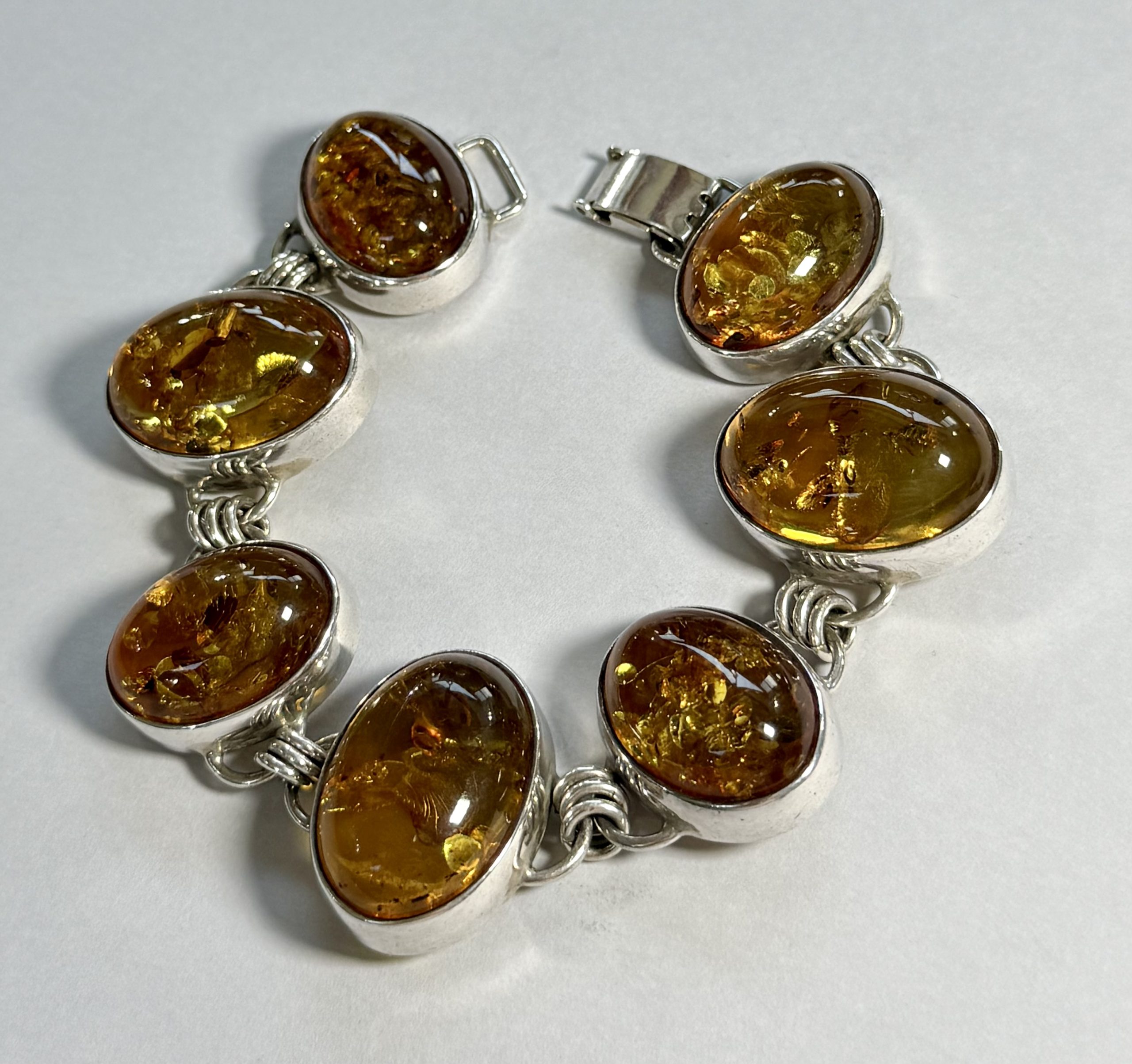 large sterling silver and oval amber bracelet