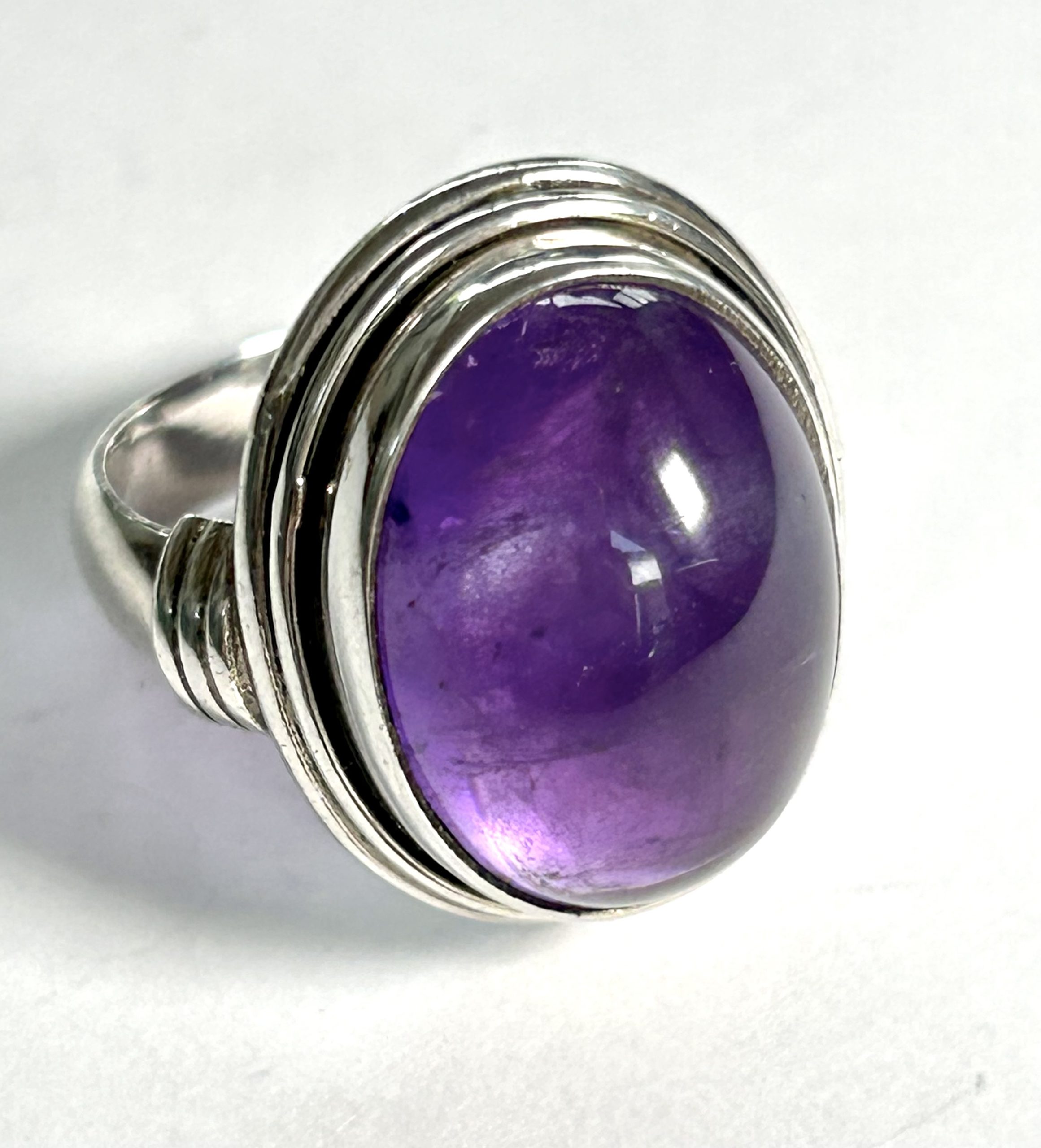 oval sterling silver and cabochon amethyst ring (21mm x 11mm)