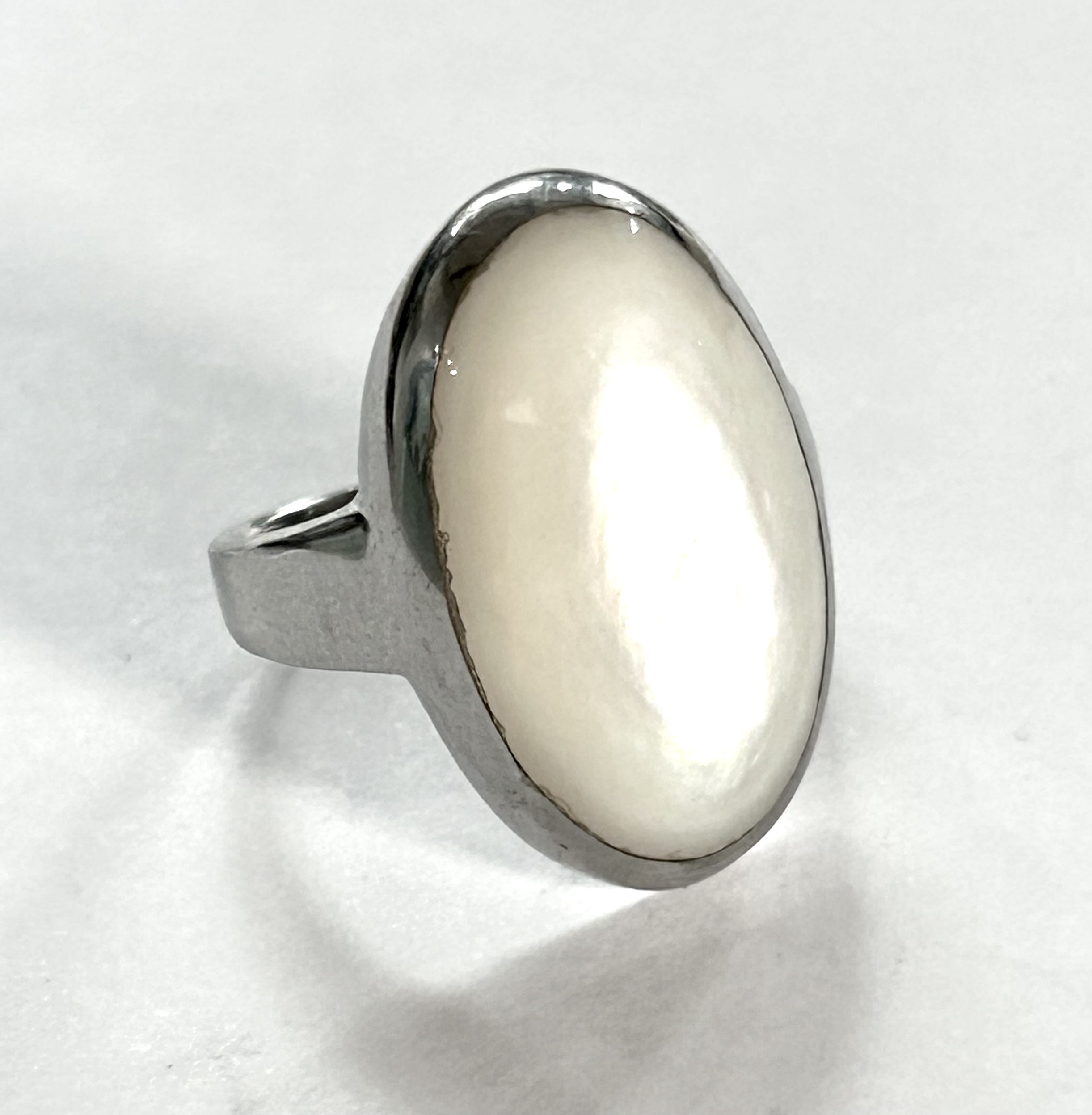 oval sterling silver and mother of pearl ring (24mm x 19mm)