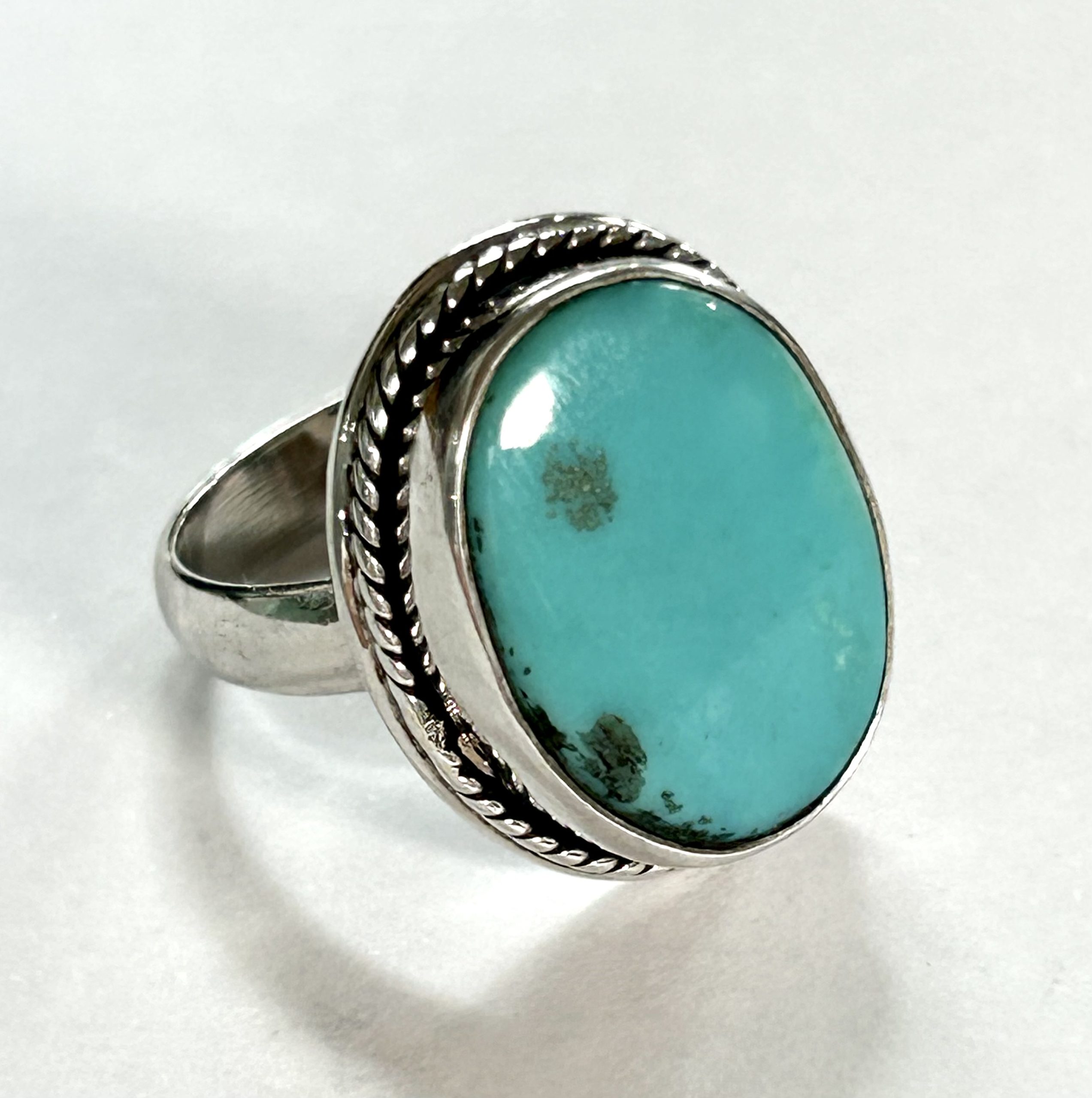 oval sterling silver and turquoise ring (16mm x 20mm)