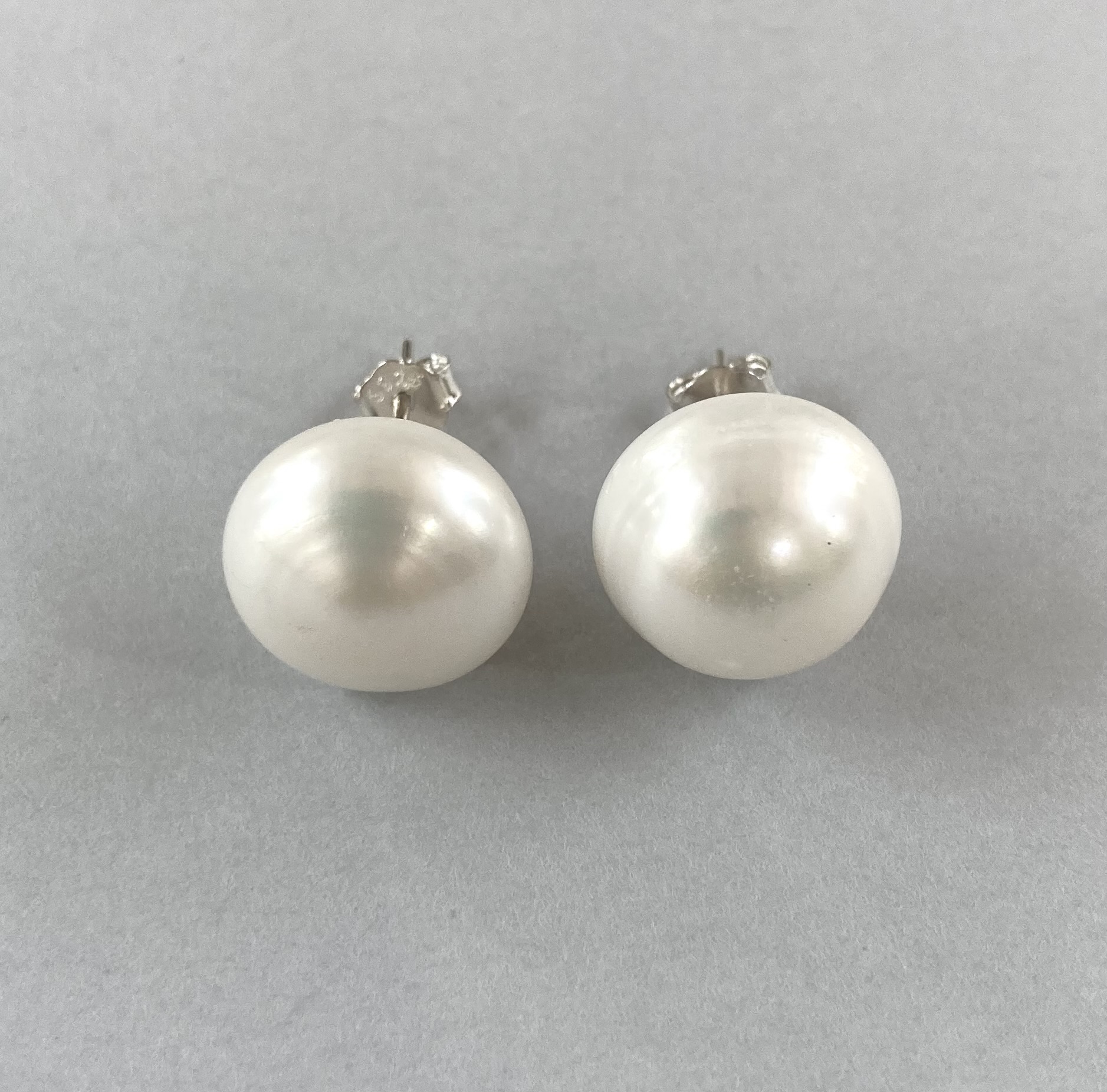 Pearl stud earrings – White, pinky peach or silver grey – 8-10mm