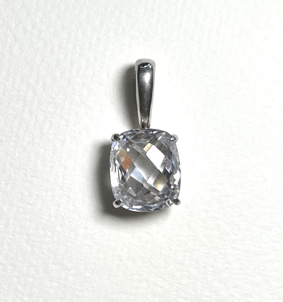 rectangular sterling silver and cubic zirconia pendant