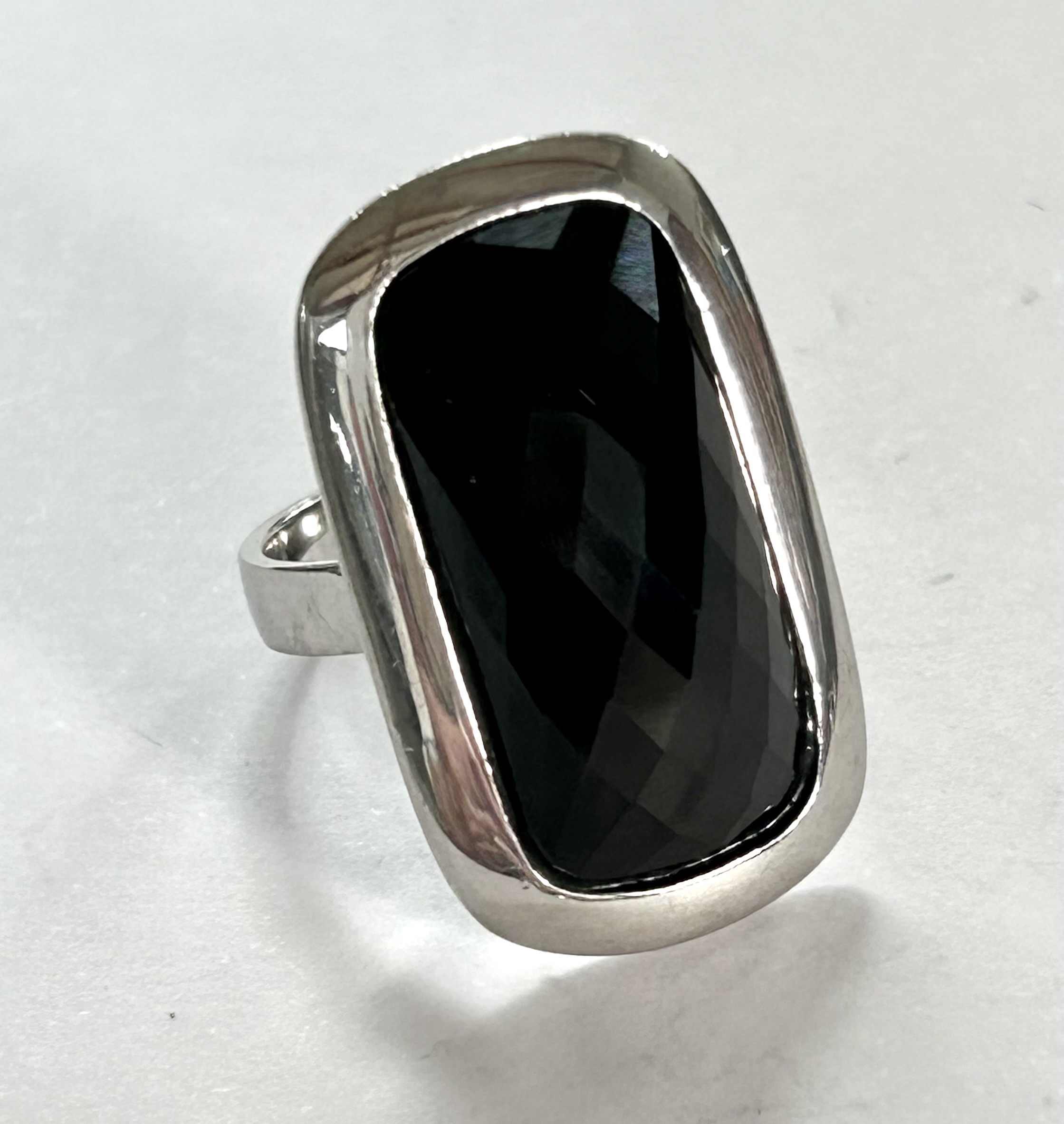 rectangular sterling silver and faceted black onyx ring (27mm x 16mm)