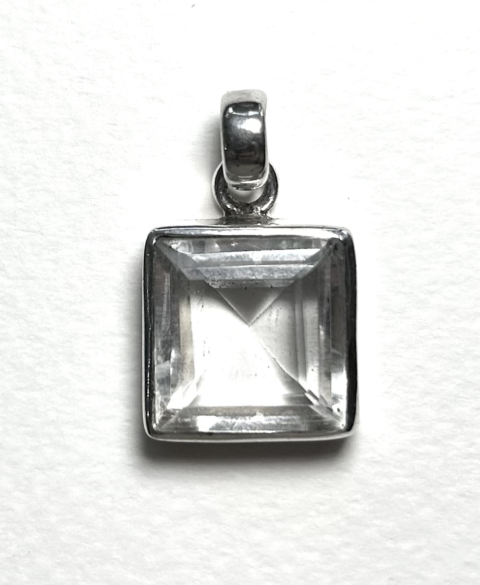 square sterling silver and rock crystal faceted pendant (15mm sides)