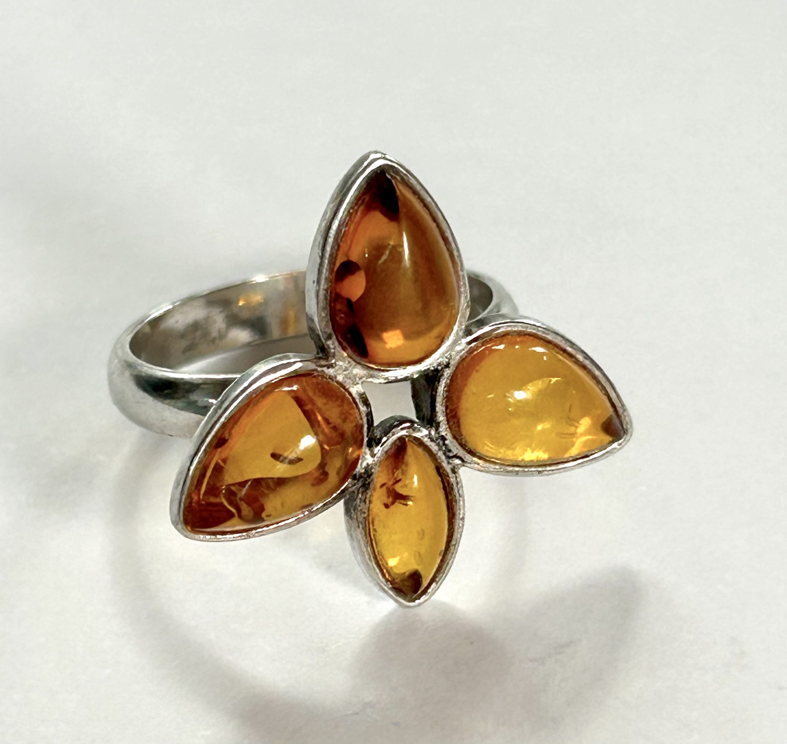 sterling silver and 4 stone amber ring (22mm x 22mm)