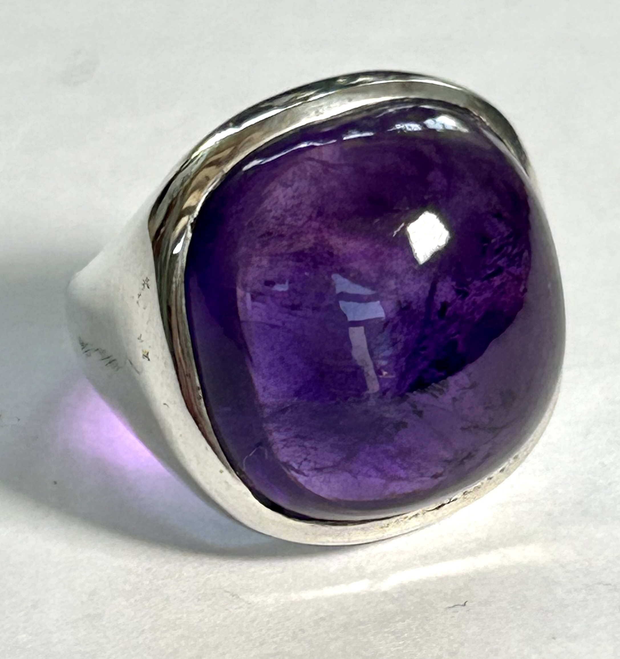 sterling silver and cabochon amethyst ring (20mm x 20mm)