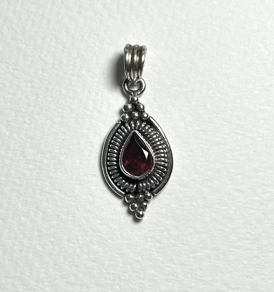 sterling silver and faceted teardrop garnet pendant (30mm t-b; 13mm)