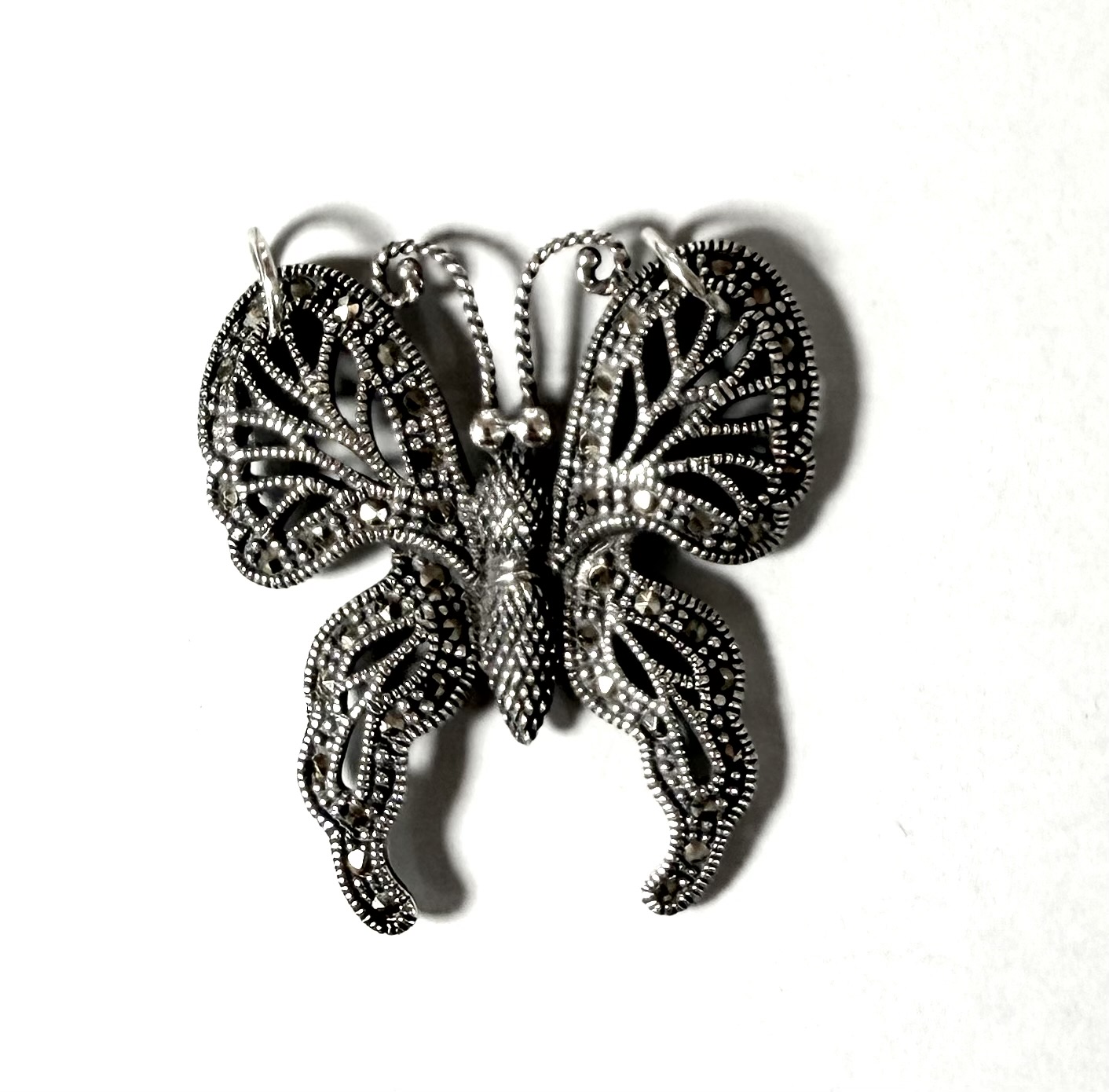 sterling silver and marcasite butterfly pendant (35mm x 32mm)