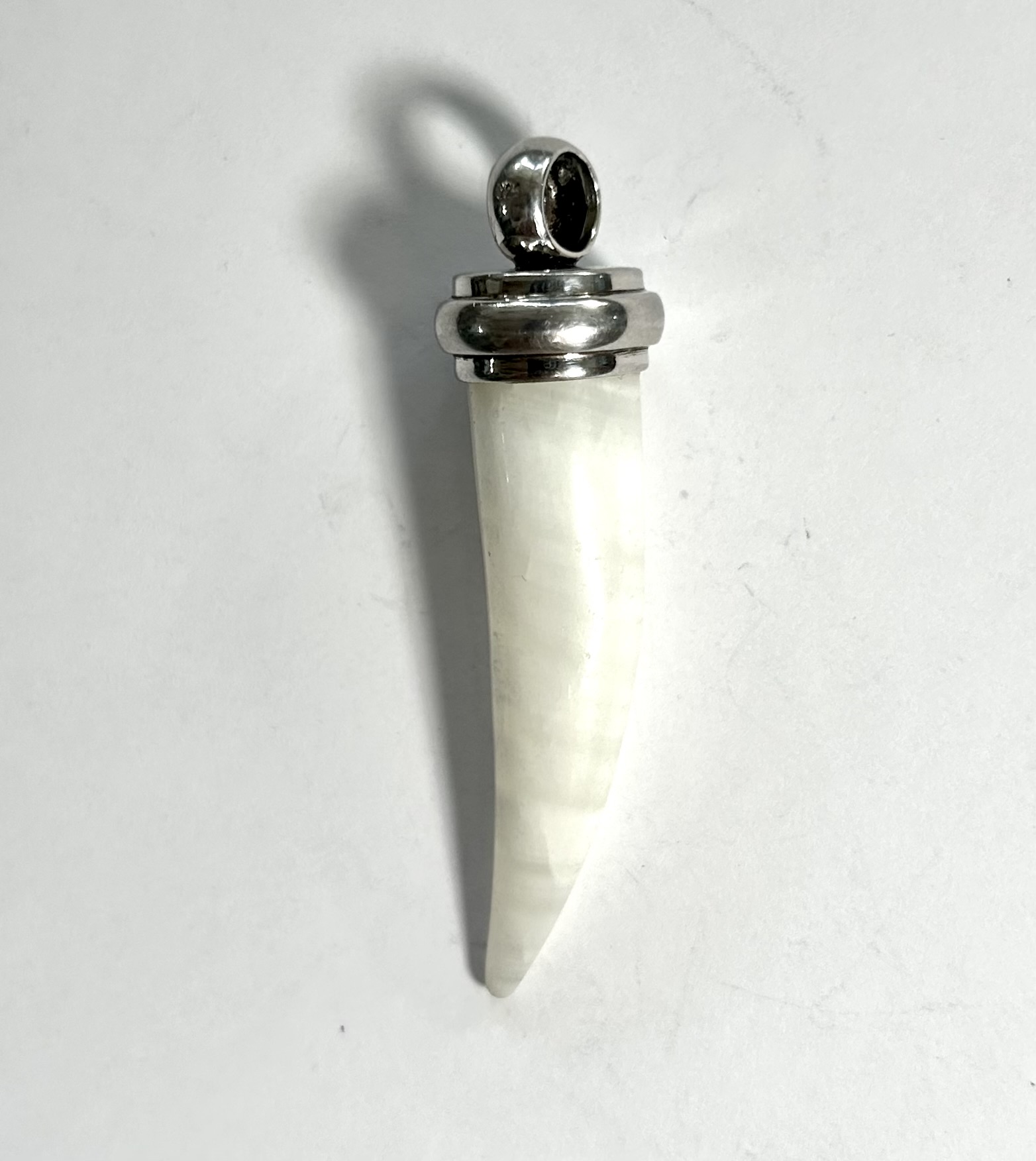 sterling silver and white agate tusk pendant (50 x 10mm)
