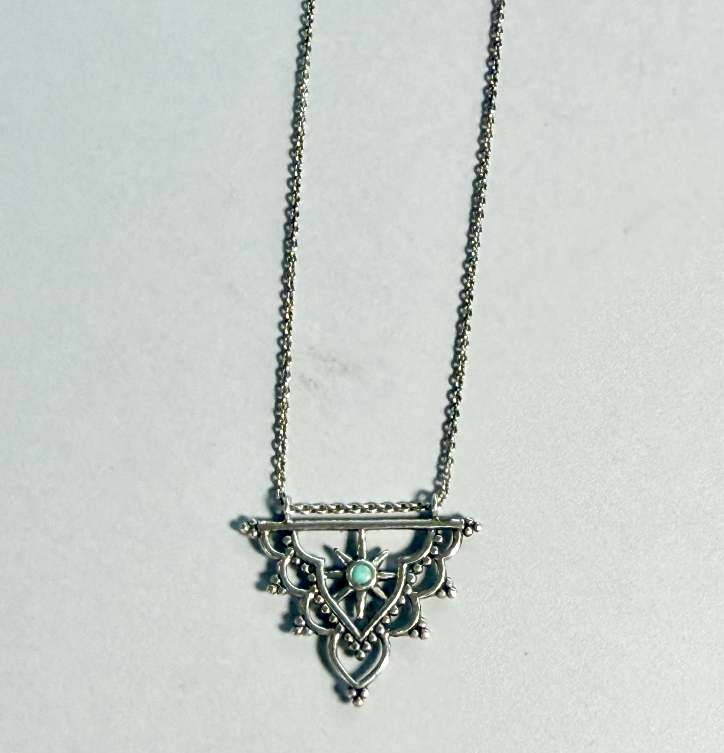 sterling silver dainty bohemian necklace with tiny turquoise gemstone