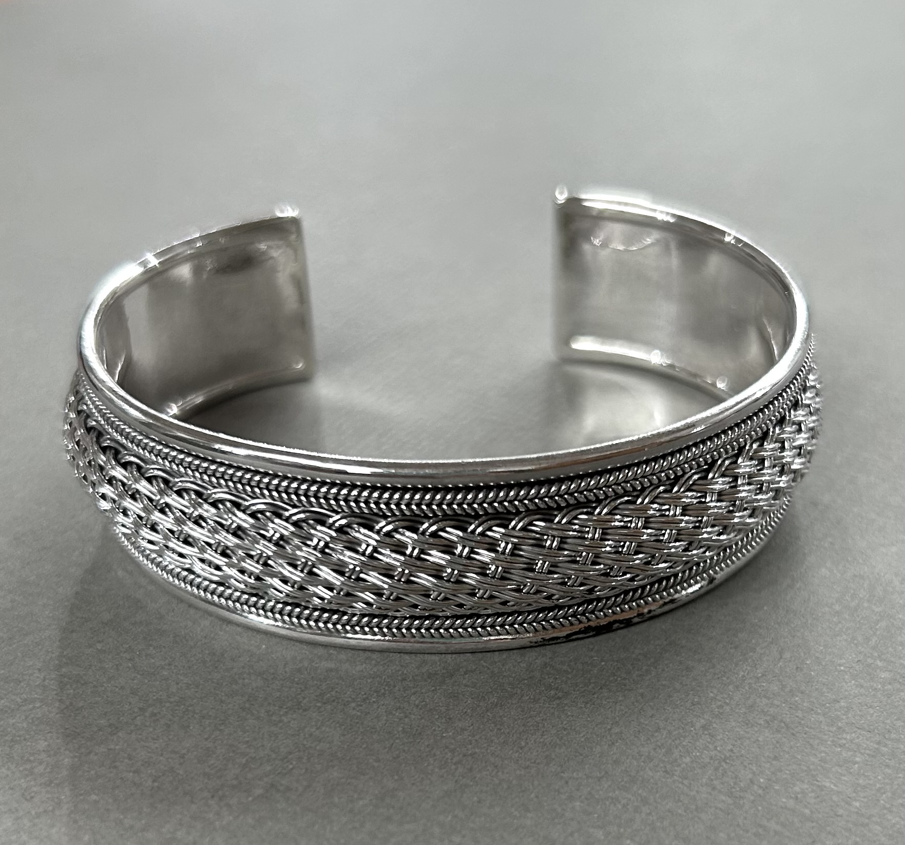 Sterling silver delicate woven detail cuff bangle