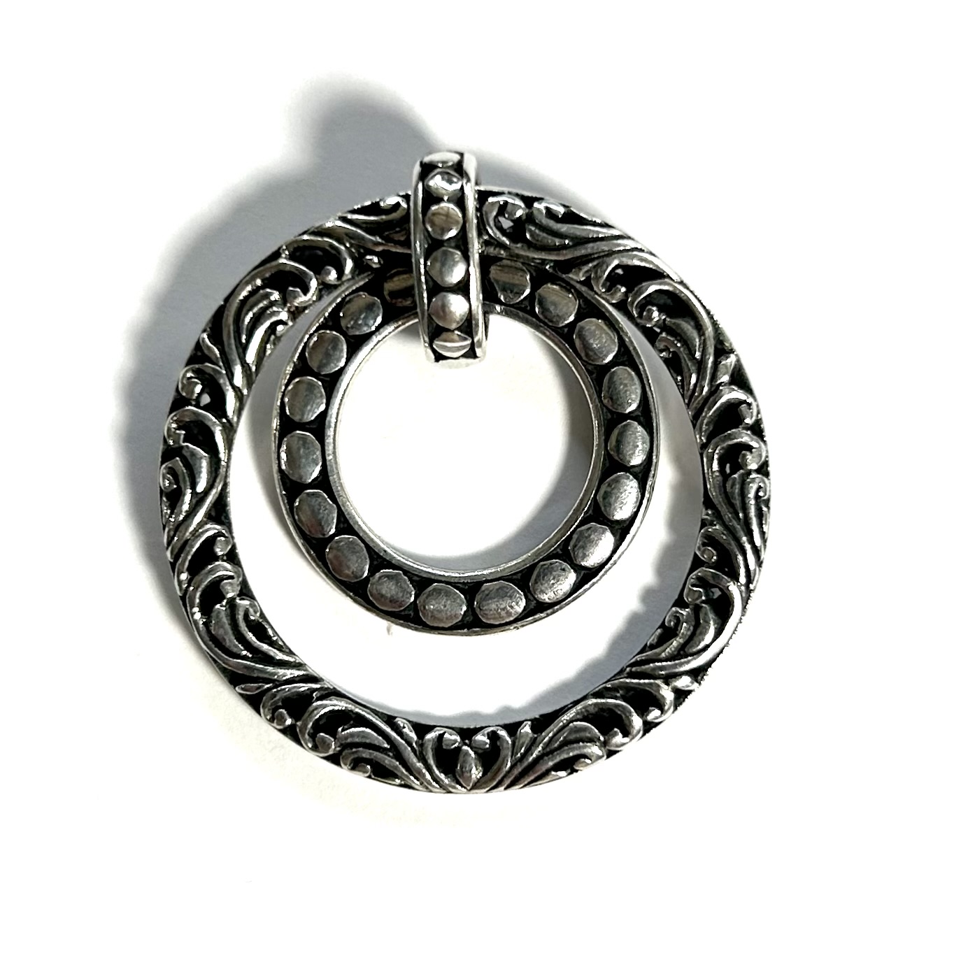sterling silver detailed double ring pendant (big ring 30mm diameter; small ring 20mm diameter)