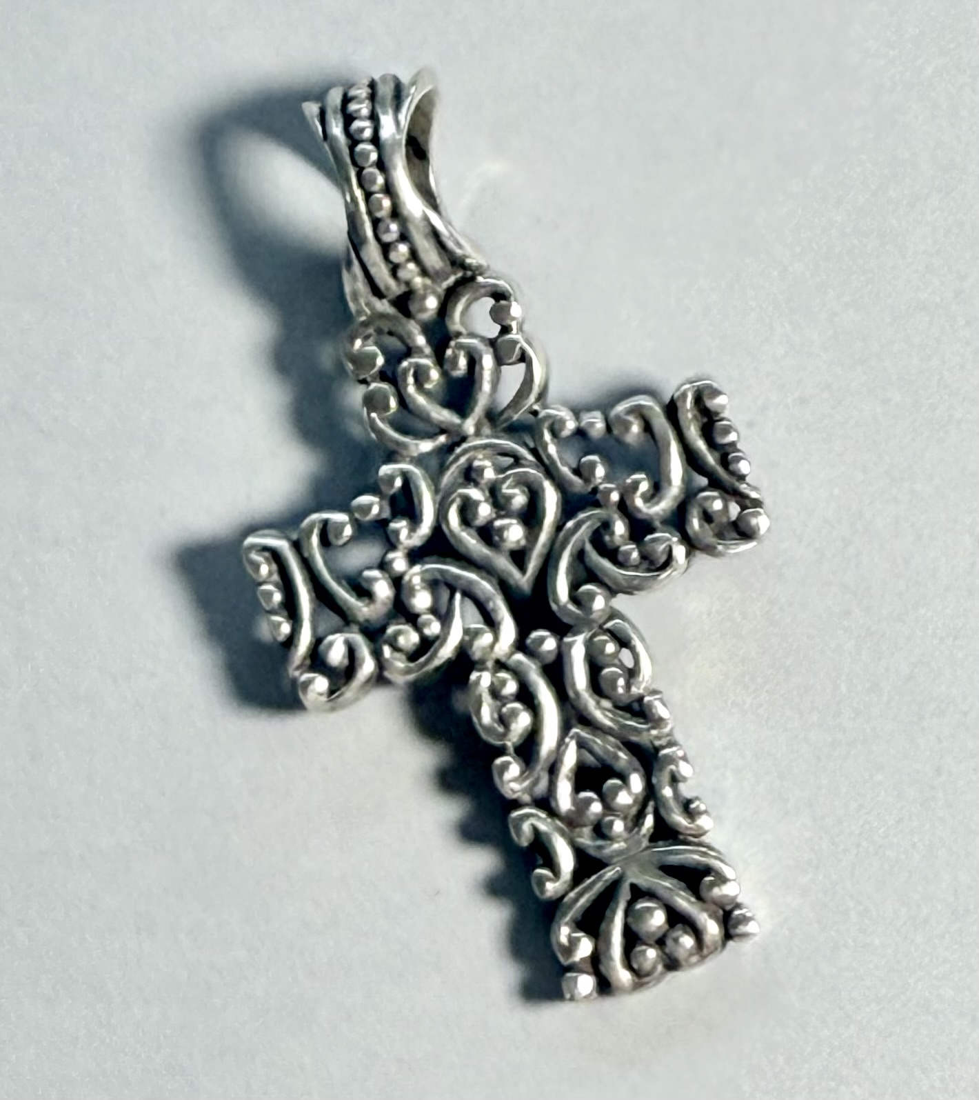 sterling silver heart detailed cross pendant (42mm t-b; 32mm x 23mm)