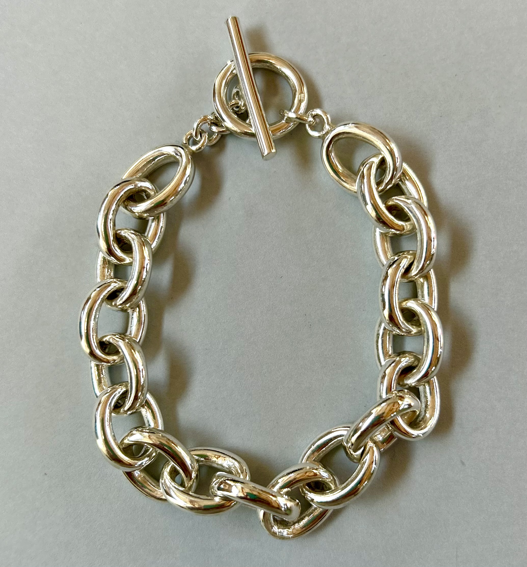 Sterling silver solid oval link bracelet 21cm