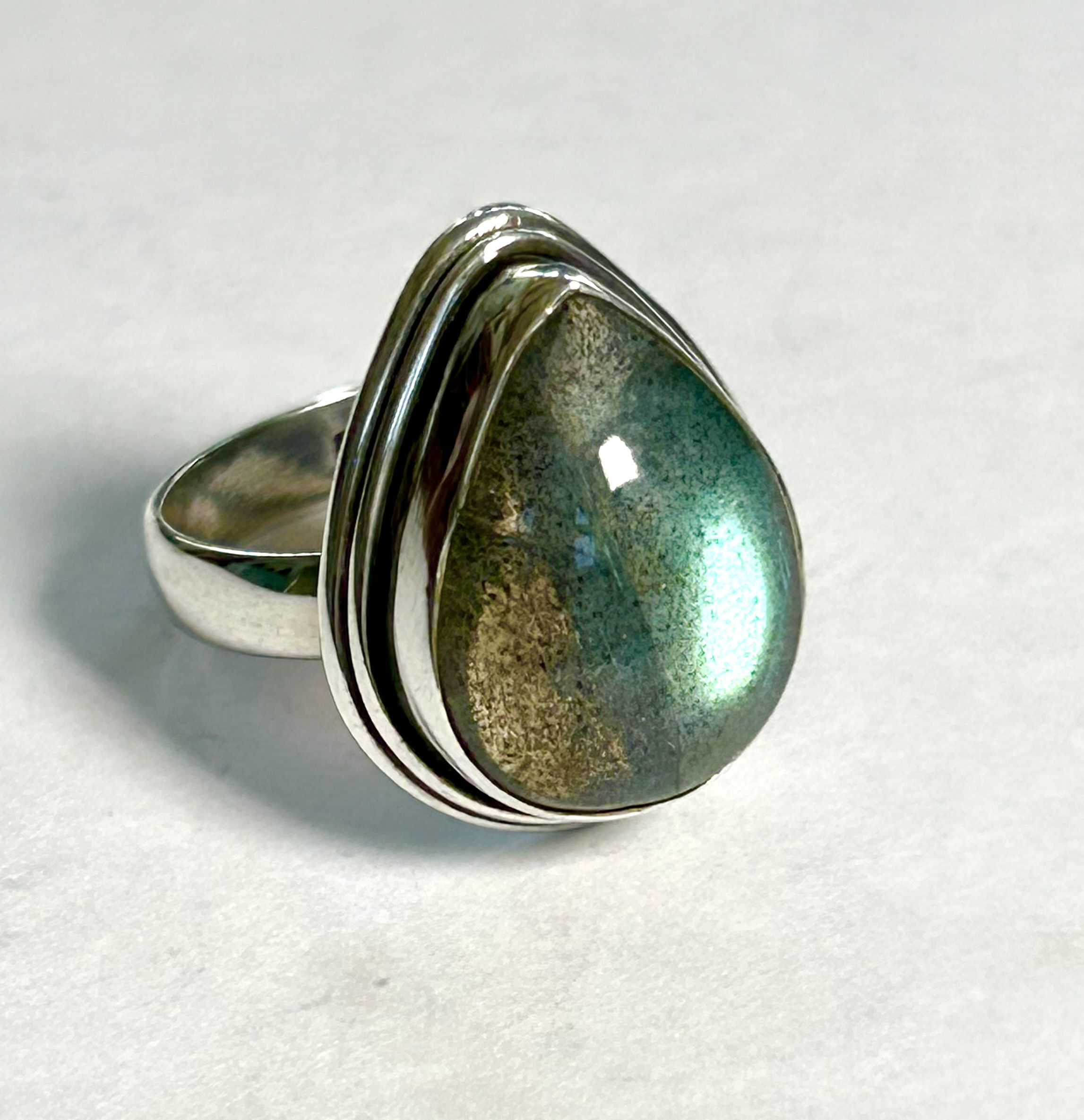 teardrop sterling silver and labradorite ring