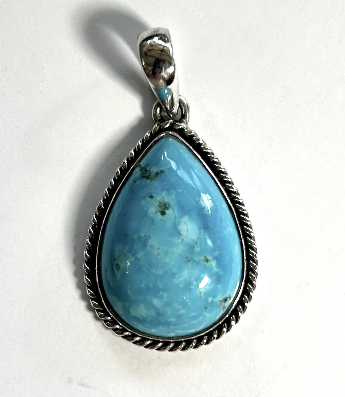 sterling silver and Mexican turquoise pendant (45mm t-b; 30mm x 23mm)