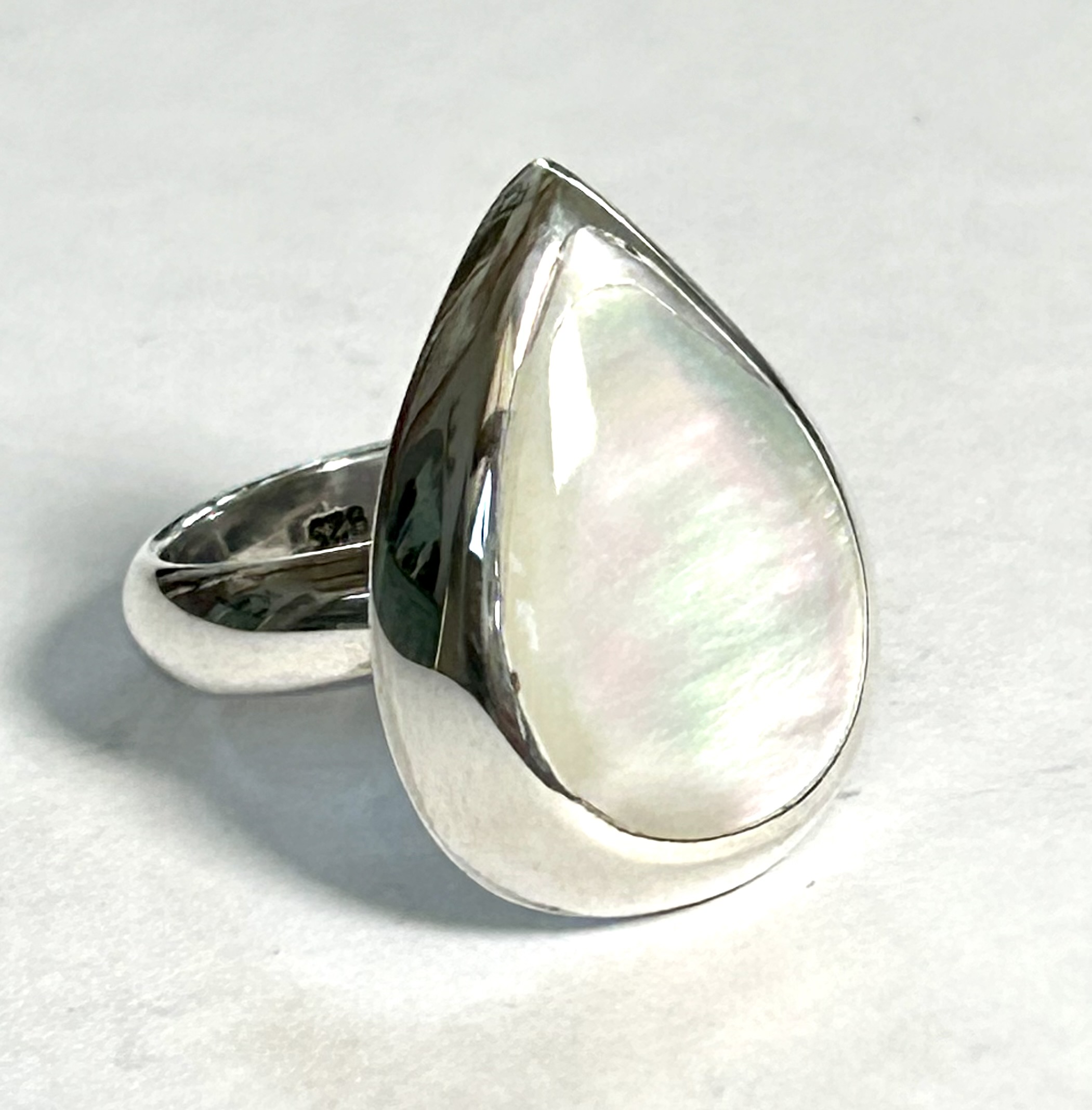 teardrop sterling silver and mother of pearl ring (22mm x 17mm)