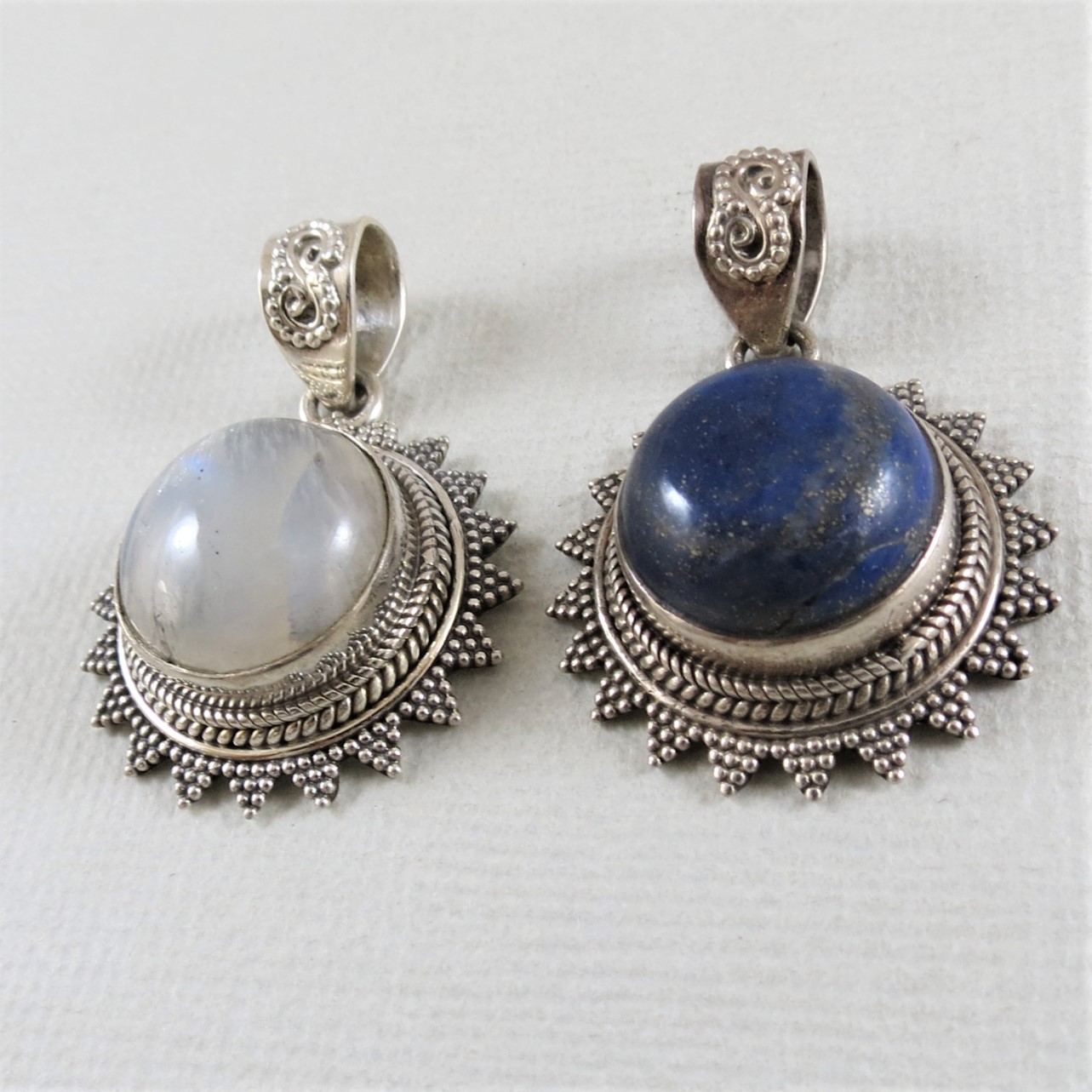 various gemstone and sterling silver pendants (25mm diameter)